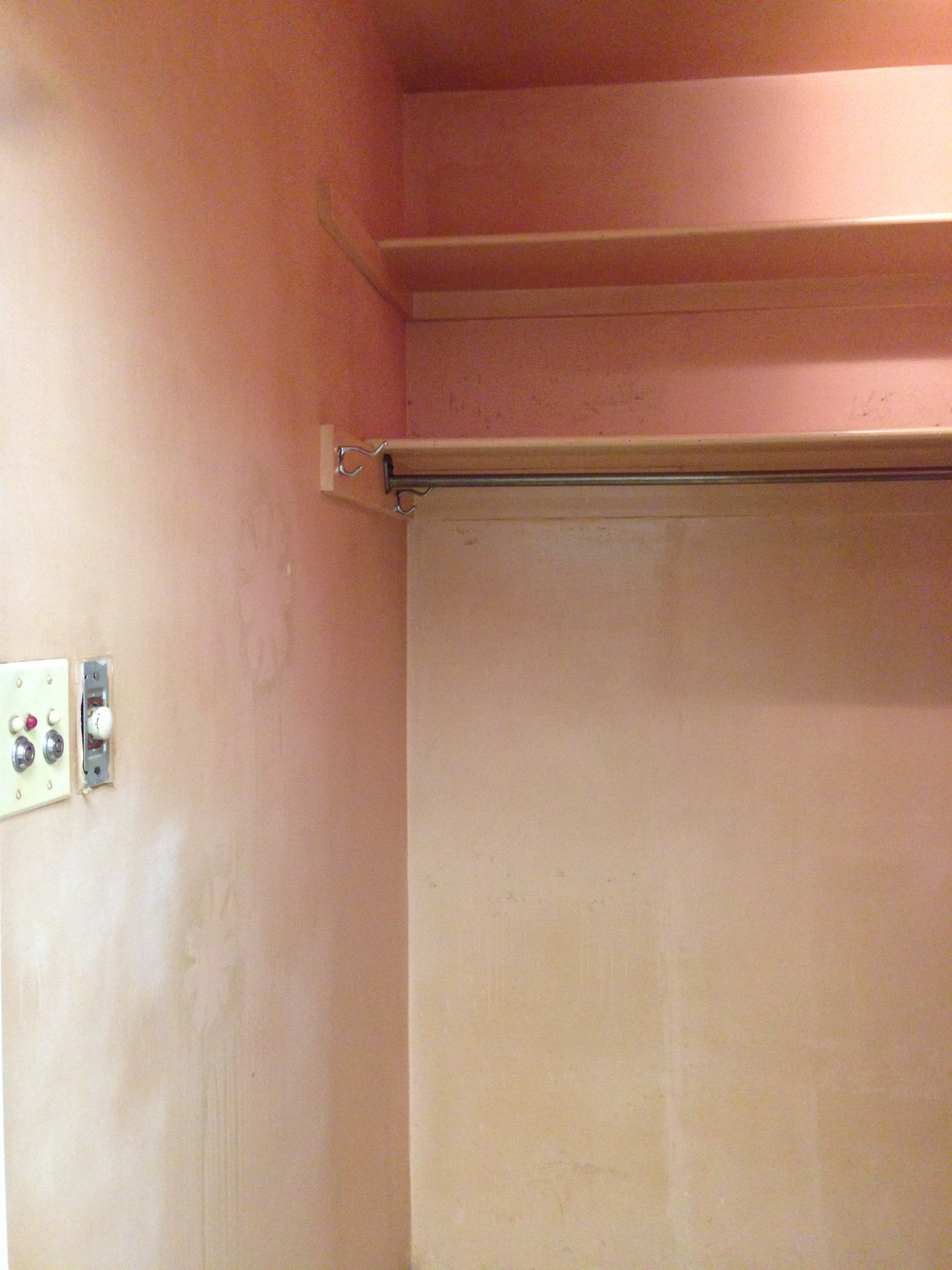 My closet is a small walk-in (yay!), but was of course completely nicotine-stained (boo).