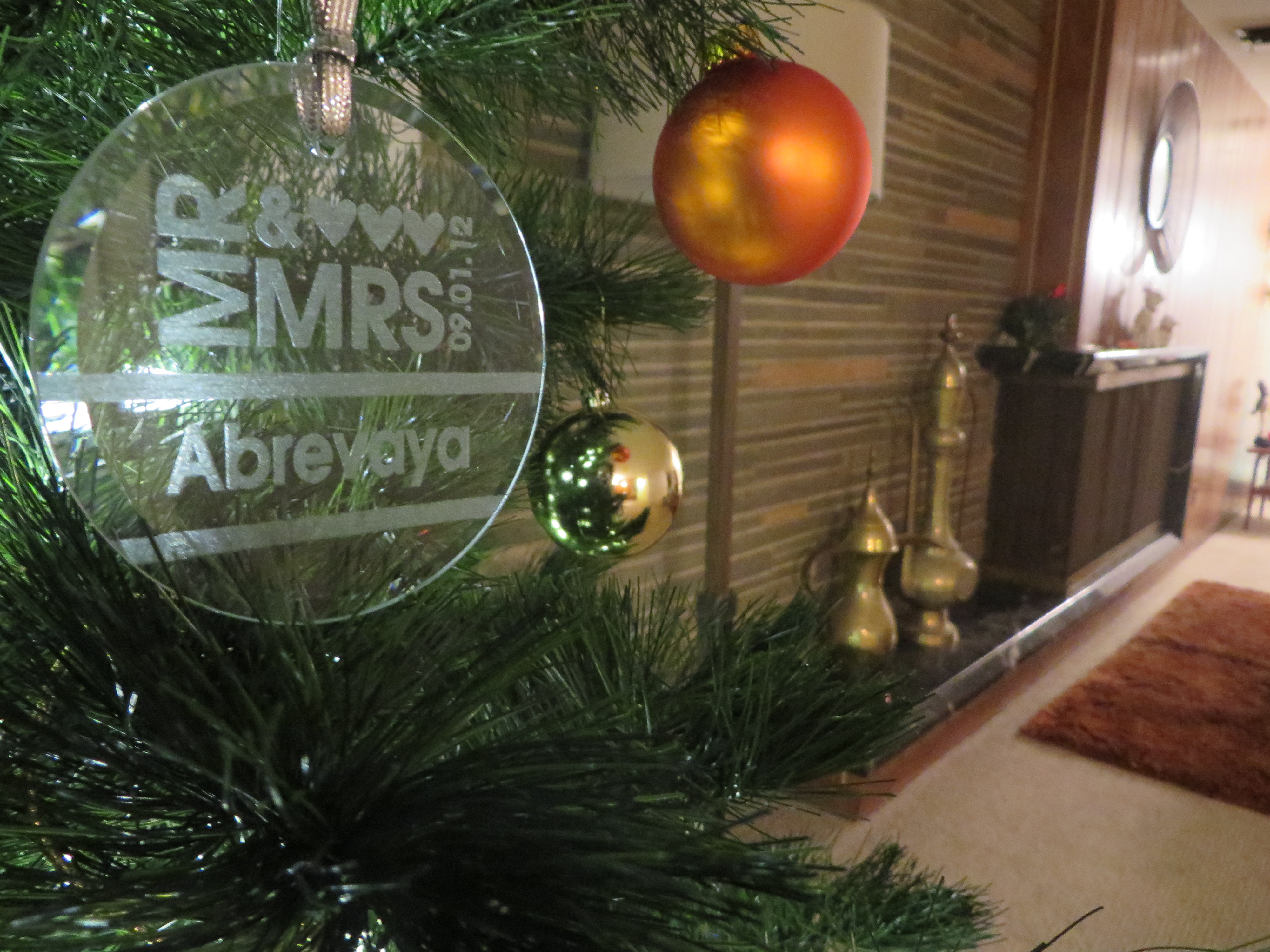 It was in pretty good shape — we spent several hours picking old tinsel strands out of the branches (a big no-no since we have cats), other than that it was good to go.  So glad we had something else from the house that we were able to use!