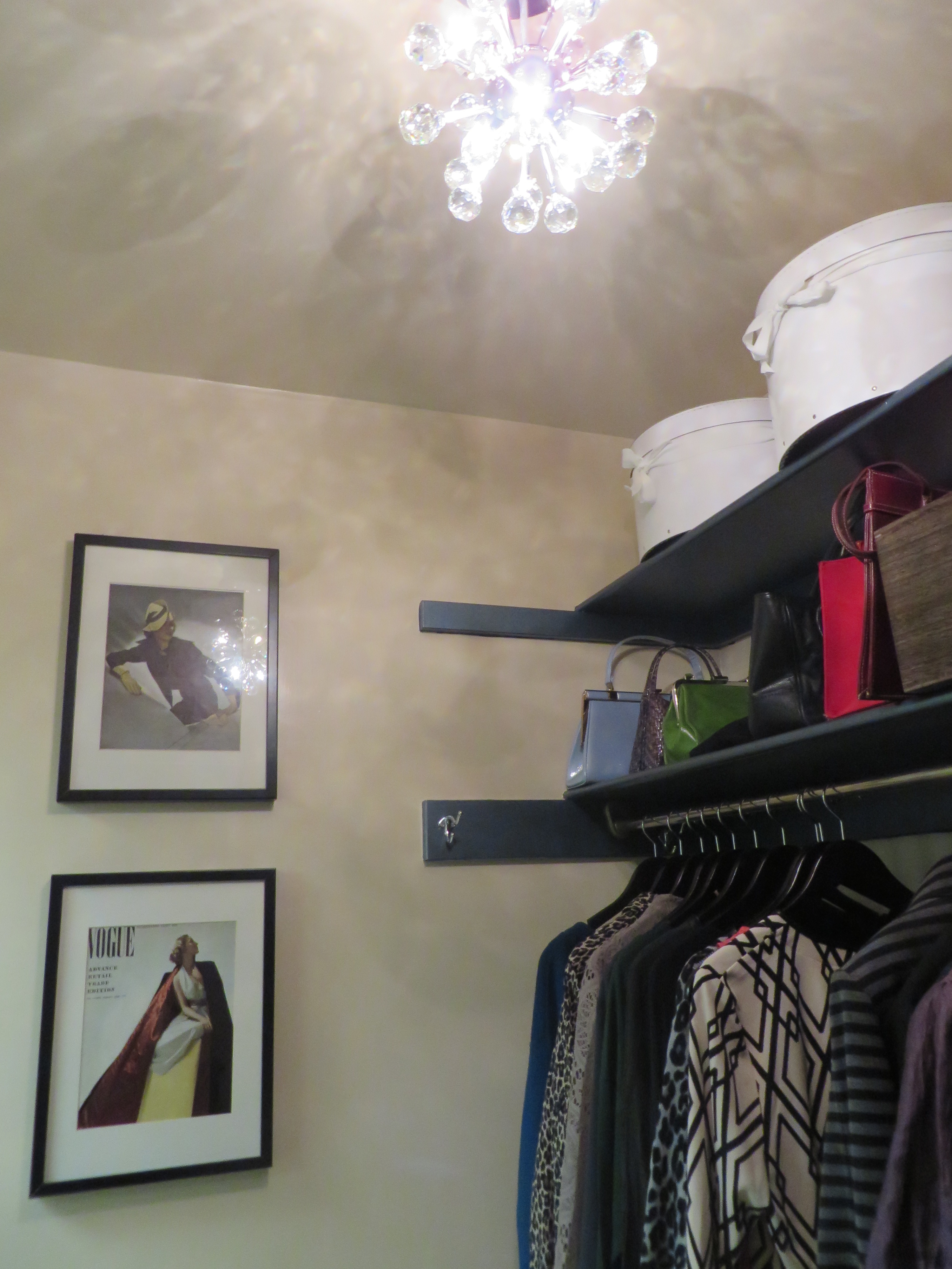 Given the size of the closet, the wall space gave me the opportunity to hang some old photos from Vogue that I’d had framed a million years ago.