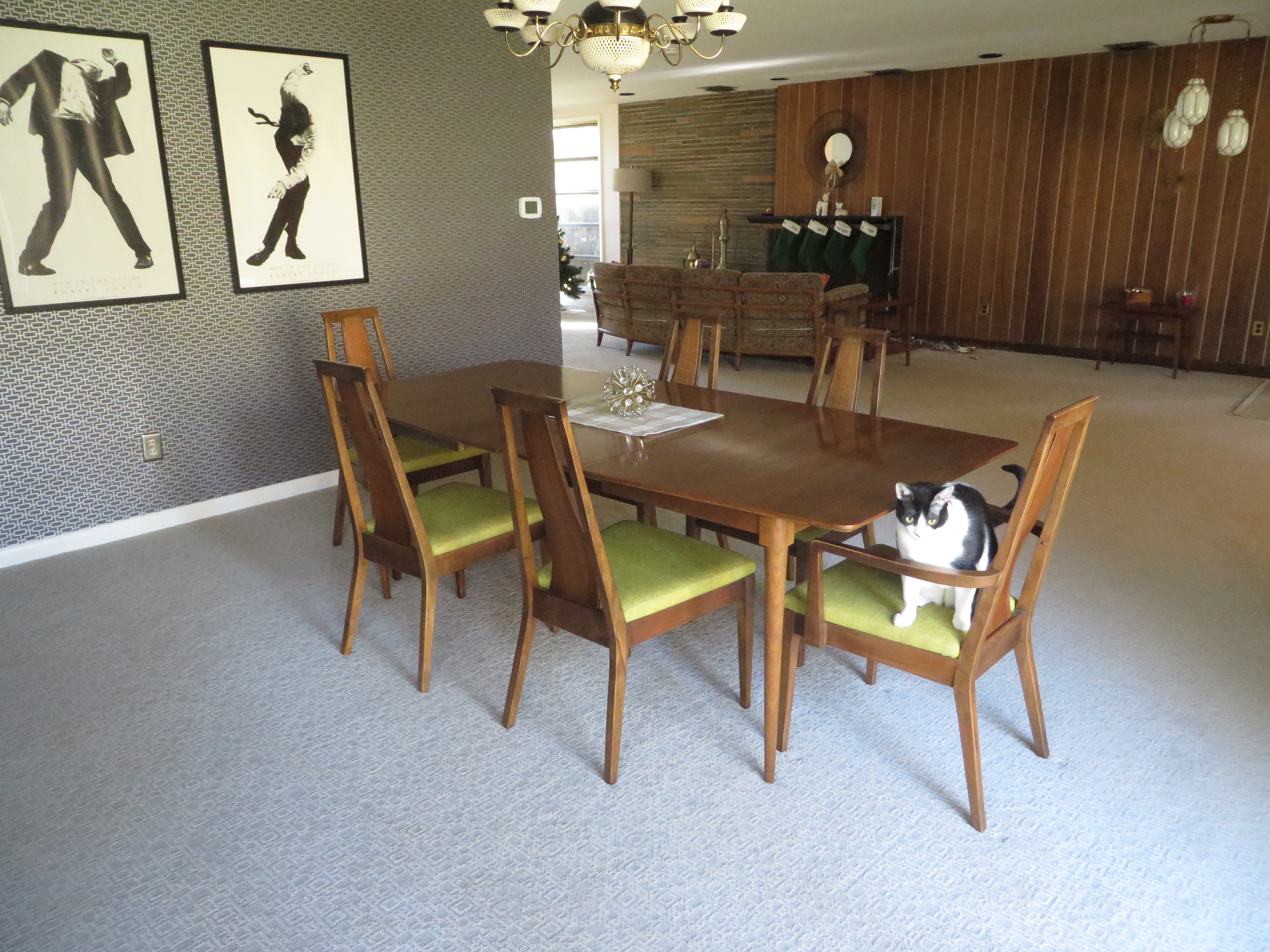 We were especially thankful that Santa came early this year, in the form of a Craigslist post for dining room furniture!  We really thought our dining room was going to stay empty for a long time, because we were holding out for MCM furniture but didn’t have much of a budget for it.  Then I was poking around Craigslist last weekend, and found a set of chairs that made my heart stop.  They were super funky, unlike anything I’d seen before, in amazing shape, and were in our budget!  AND, not only were the chairs gorgeous, but there was a coordinating table available too!  We road-tripped out towards Lancaster the next day to check them out at Blockhead Furnishings, and had an absolute blast…  seriously, that place is a wonderland of MCM furniture.  Two floors packed to the gills with beautifully restored and so-good-it-doesn’t-need-restoring stuff…  we wanted to just move in!  Not only did they give us a great deal since we were getting multiple pieces, they rushed to deliver them the next afternoon so we’d be able to use our dining room for our Christmas celebration with family.  Yay!  (Thanks Scott and your team!)