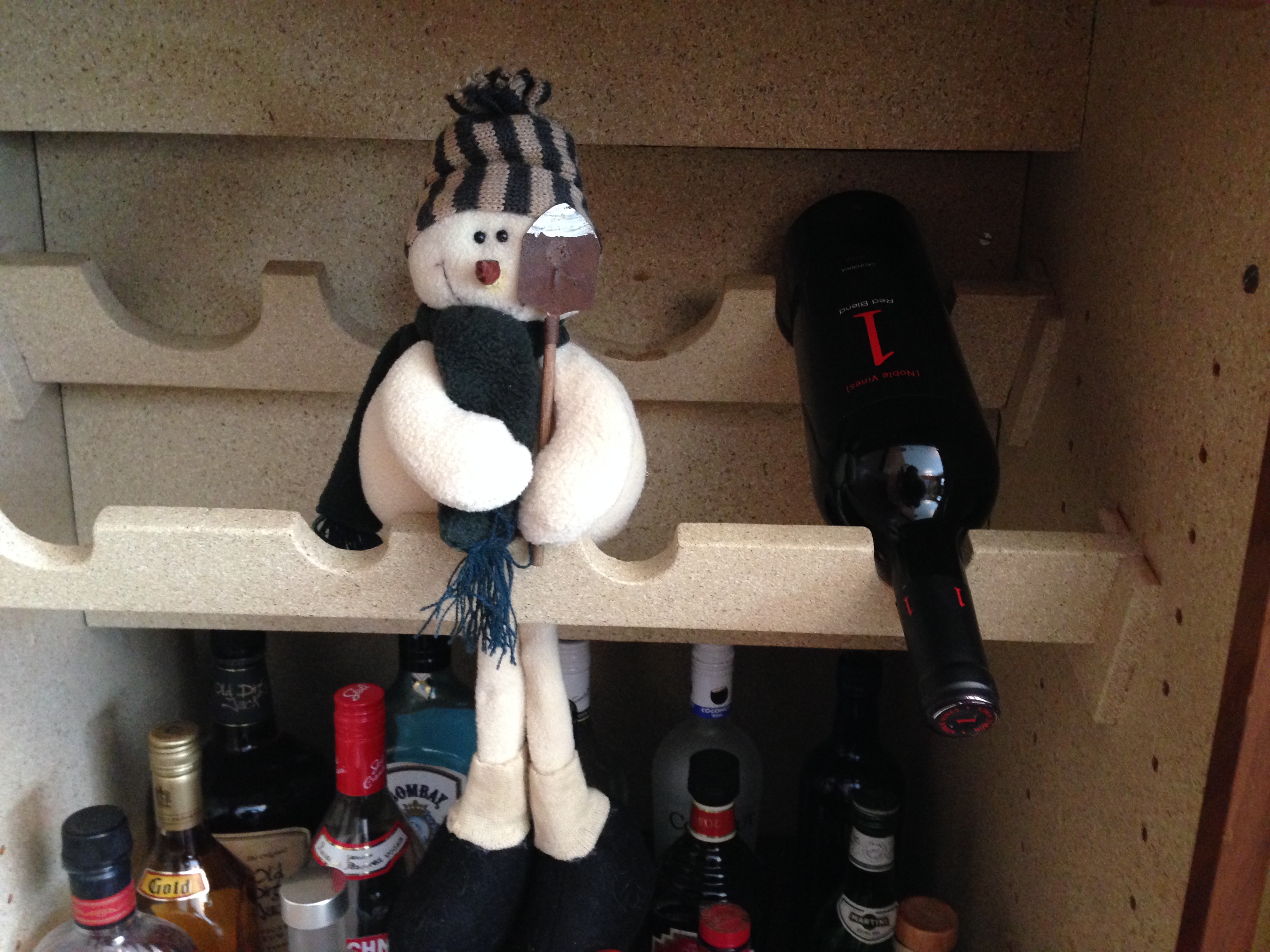 For the past few weeks he’s been MIA. I wasn’t sure whether to breathe a sigh of relief, or be on guard. Every time I turned a corner, or opened a door, I half expected to see that murderous little face staring at me. And then the other night, I opened the bar to get a bottle of wine for dinner…