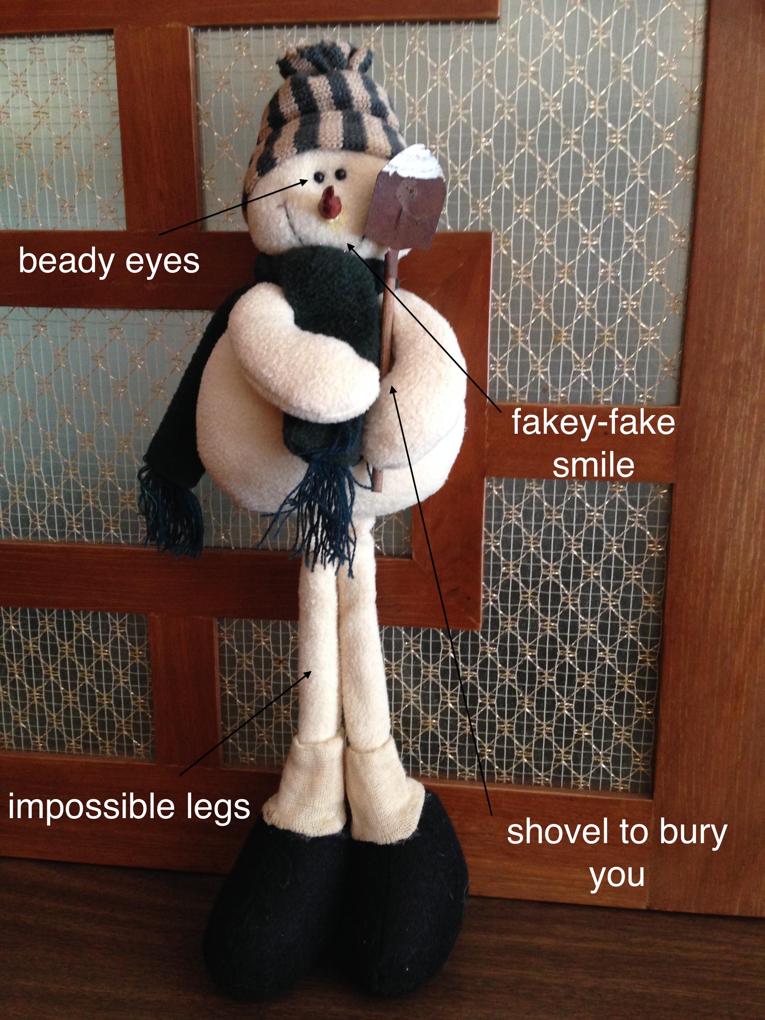 So, given that the snow is still in our lives, I figure it’s time to fill you in on something that’s been freaking me out for several months now. We have a psycho stalker snowman living in the house.