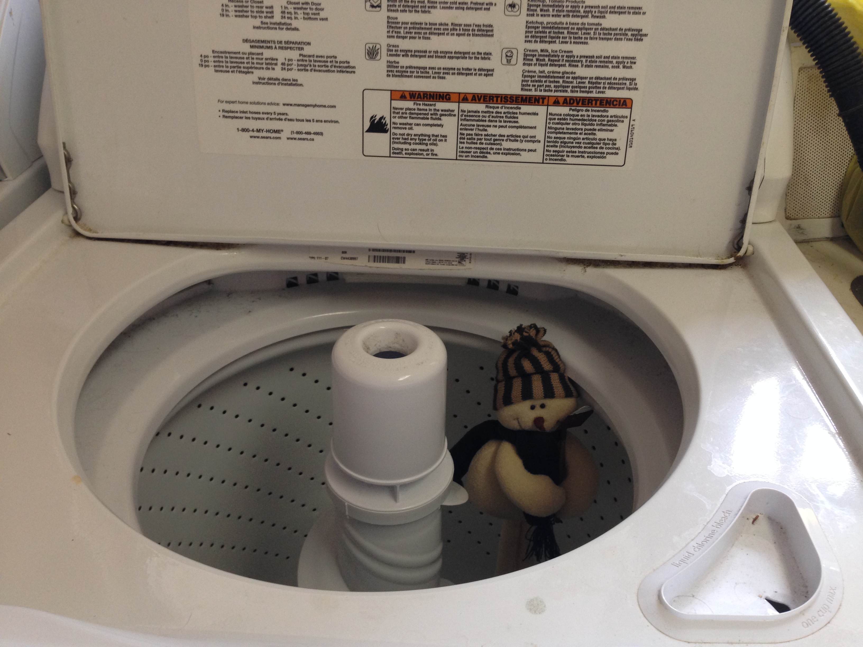 He disappeared for about a week, and we thought we were finally free… then he turned up, grinning his terrifying grin, in the washing machine.
