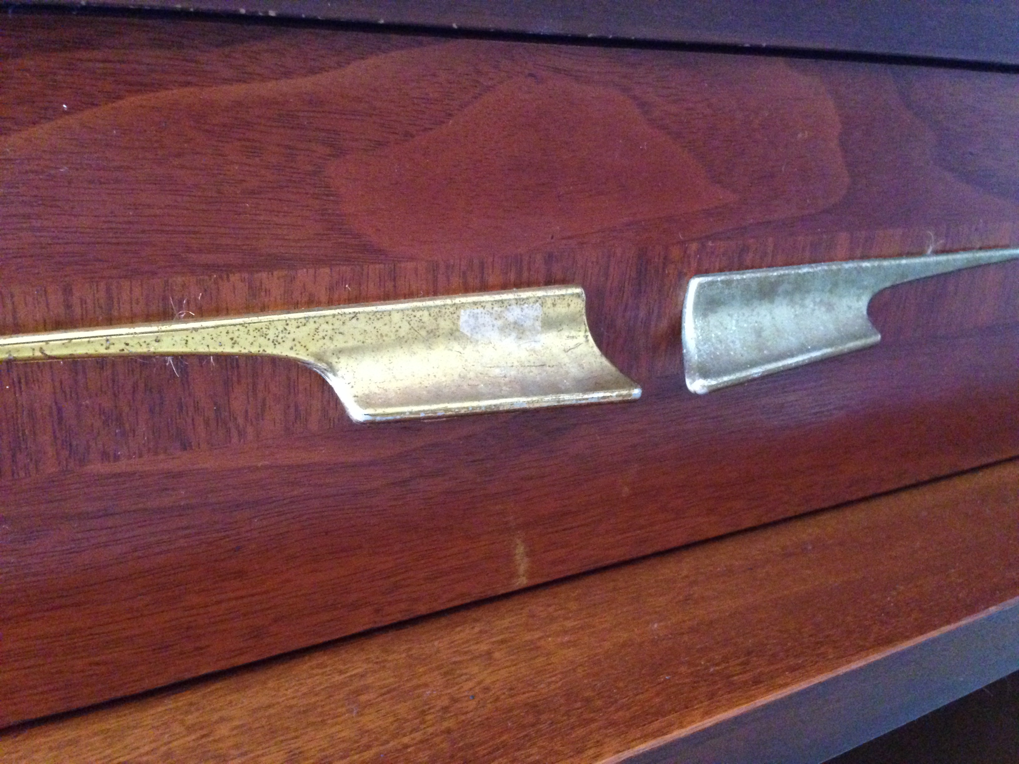 Then a couple of weekends ago, our awesome friend Maureen gave us a deal on a vintage credenza she was looking to get rid of. It needed some sprucing up, but of course that meant that Jack got to go nuts with some Simichrome and tinted furniture oil, so he was a happy camper!