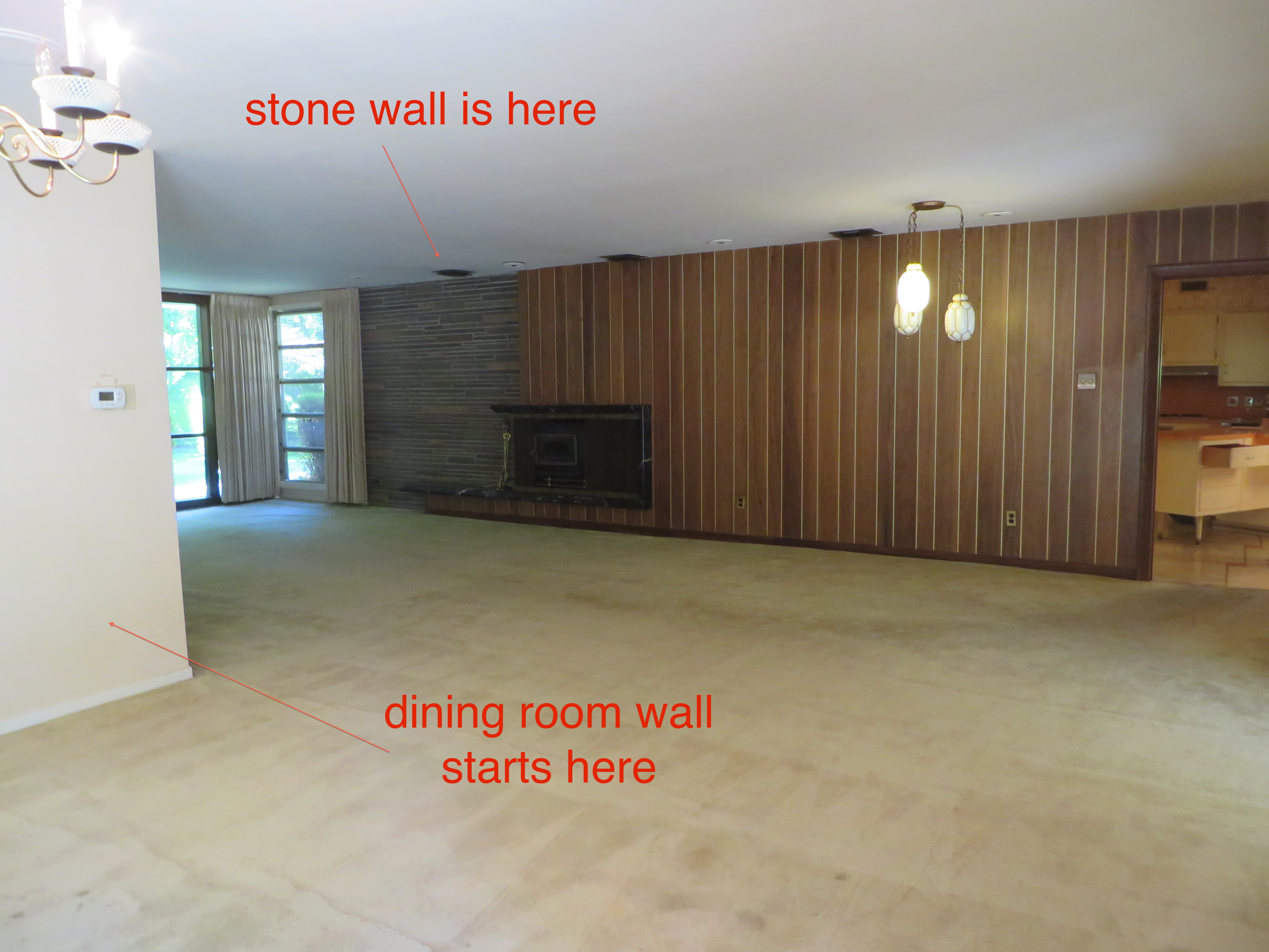 So much fun! Which brings me to a little sneak peek we’ll give of one of the design choices that we made ourselves. I’ll back up for a sec. As we were choosing wallpaper for the different rooms in the house, one thing that was completely stressing me out was the dining room. I felt like I was getting pulled in a bunch of directions — I really wanted something in a medium gray, to tie in with the stone wall that’s caddy-corner across the open living room…