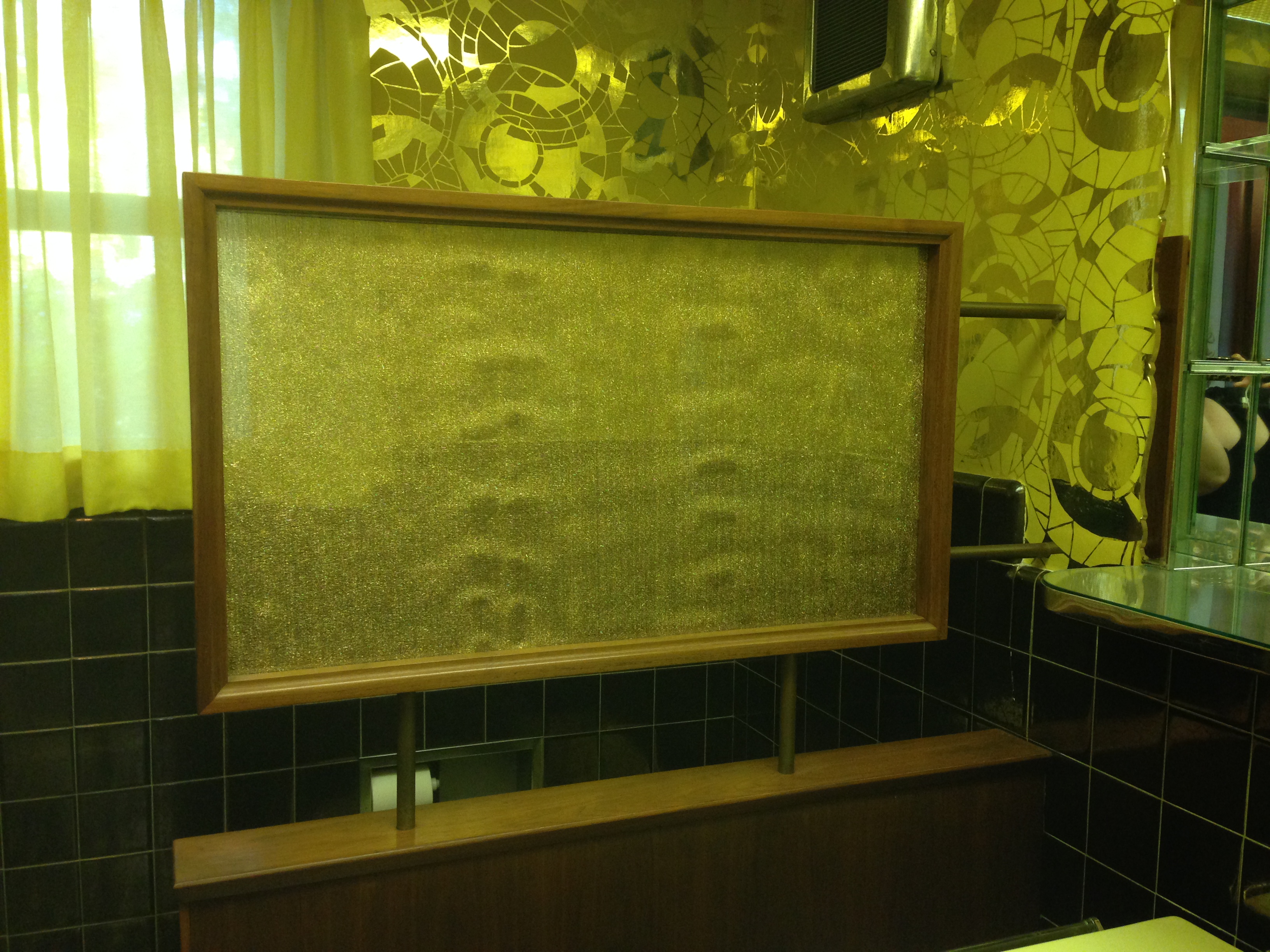 When this house was rebuilt in 1957, the owners were really purposeful in every design element they chose for the renovation. Being the design geek of the relationship, I love how certain colors, fixtures, textures, etc are pulled through from room to room. It really pulls the house together and makes everything a cohesive whole. And one of my favorite design elements they used is, for lack of a better term, rectangles with lines coming out of each side.